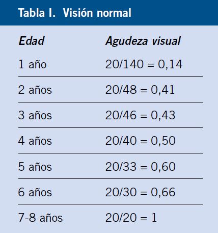Es primordial saber que la AV se desarrolla desde que el niño nace hasta aproximadamente los 7-8 años que alcanza un nivel de adulto (Imagen de abajo).